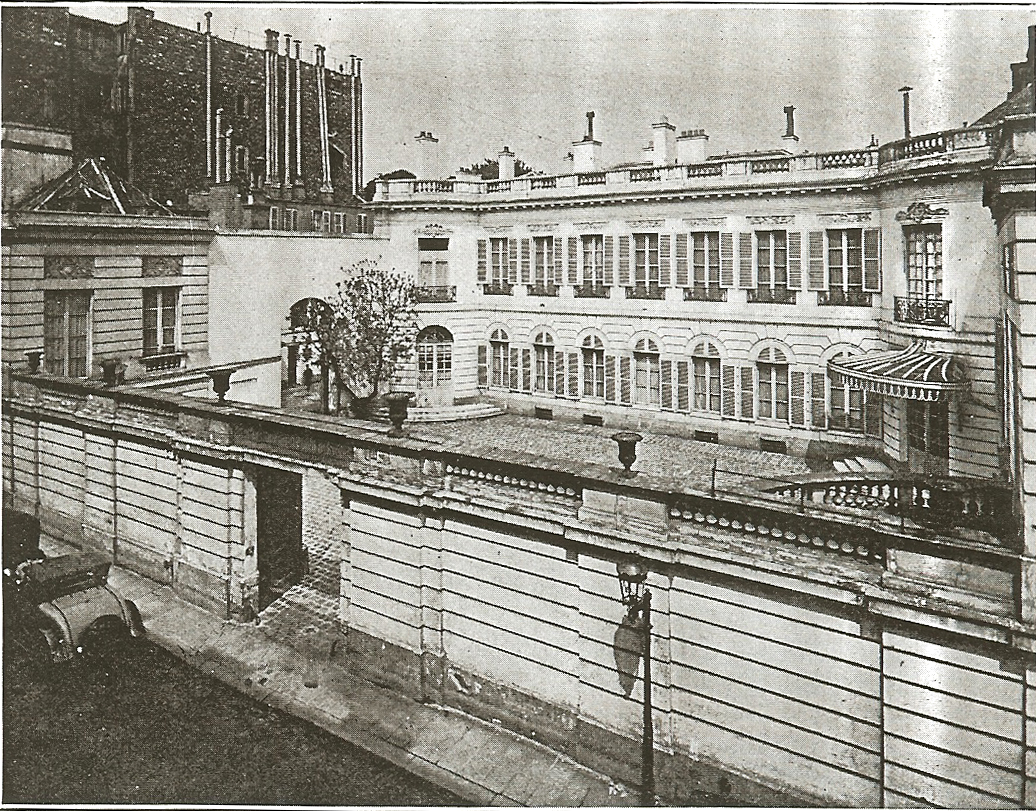 Cet Hôtel, bâti au XVIIIème siècle, et dont la superficie avec cour et jardin atteignait 4800 m2, avait d’élégantes proportions. Il comprenait un bâtiment central et deux ailes donnant au midi sur la Cour d’Honneur en bordure de la rue Saint-Dominique et au nord sur un jardin intérieur.
